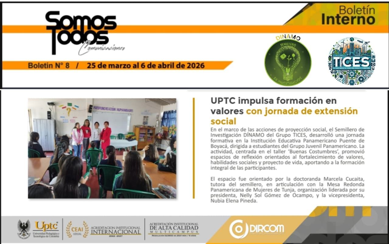 Muy complacidas registramos en la Mesa Redonda Panamericana Tunja la especial labor de nuestra Junta Directiva en cabeza de la Dra. Nelly Sol Gomez de Ocampo y de la vicepresidenta Dra. Nubia Elena Pineda DE Cuadros por su contribución a la creación del Grupo Juvenil, en el Colegio Panamericano del Puente de Boyacá. Muchas gracias por esta importante difusión de los valores académicos, investigativos y sociales, en pro de una notable actividad de extensión.